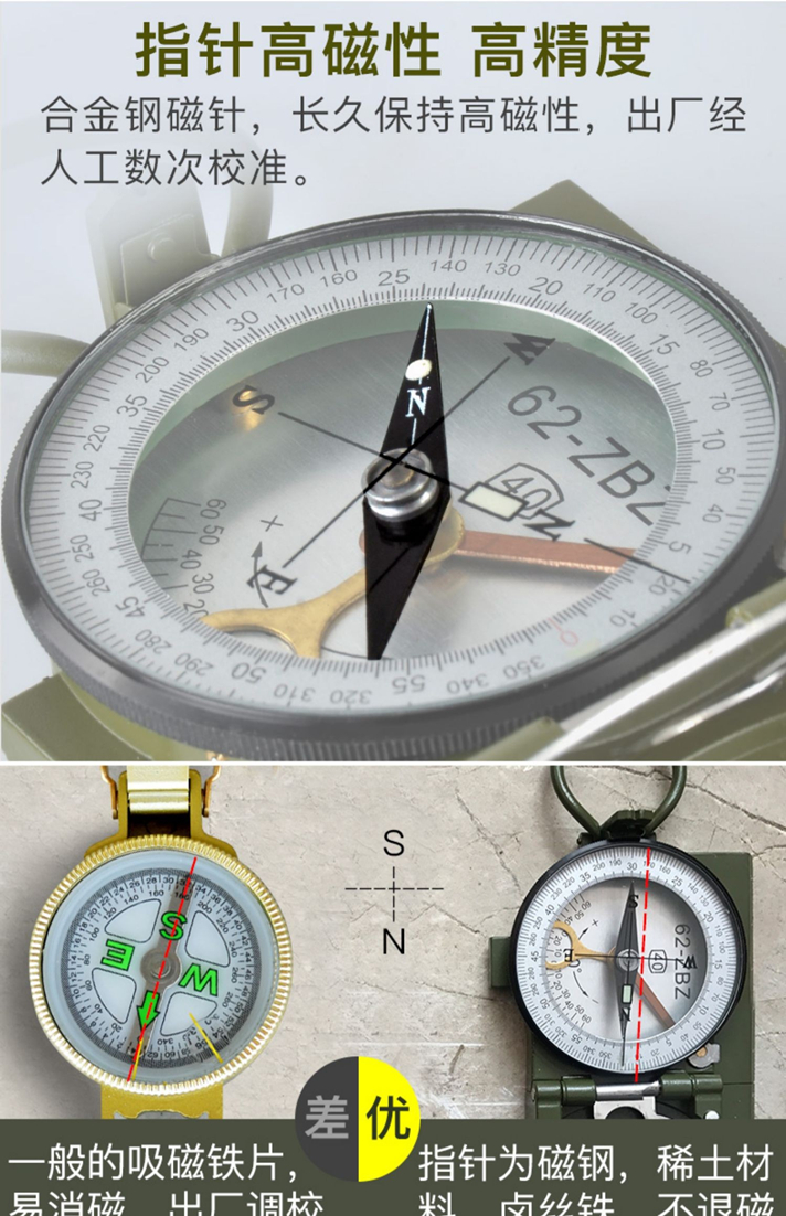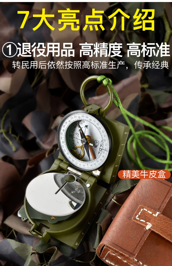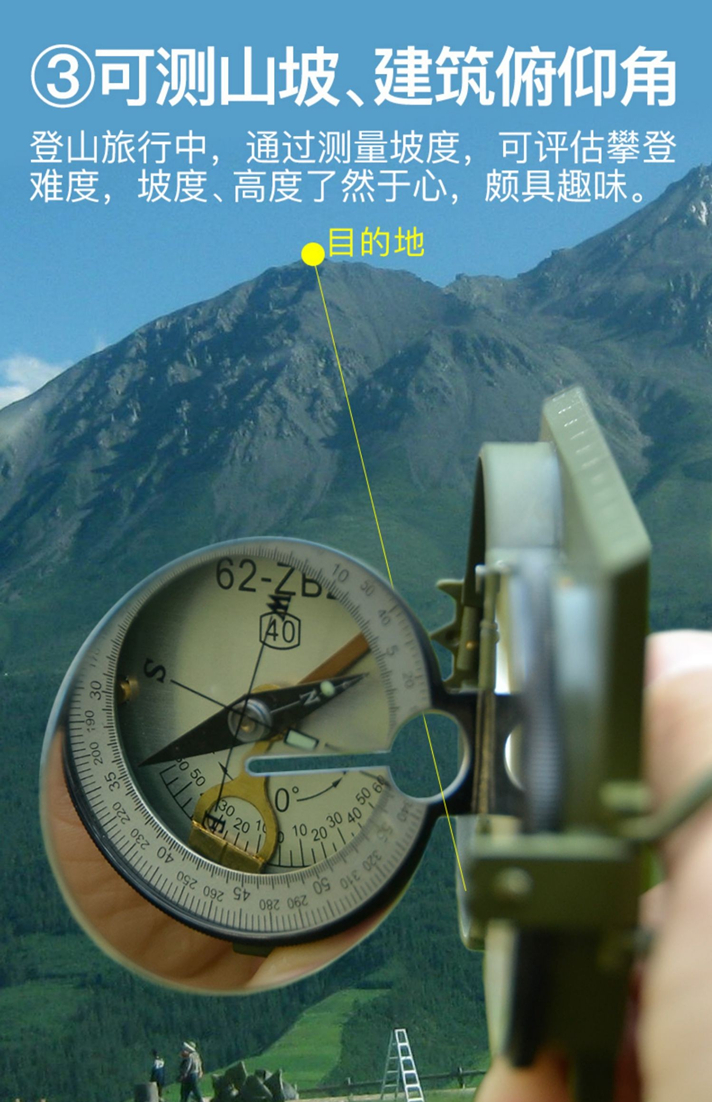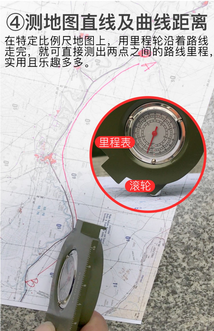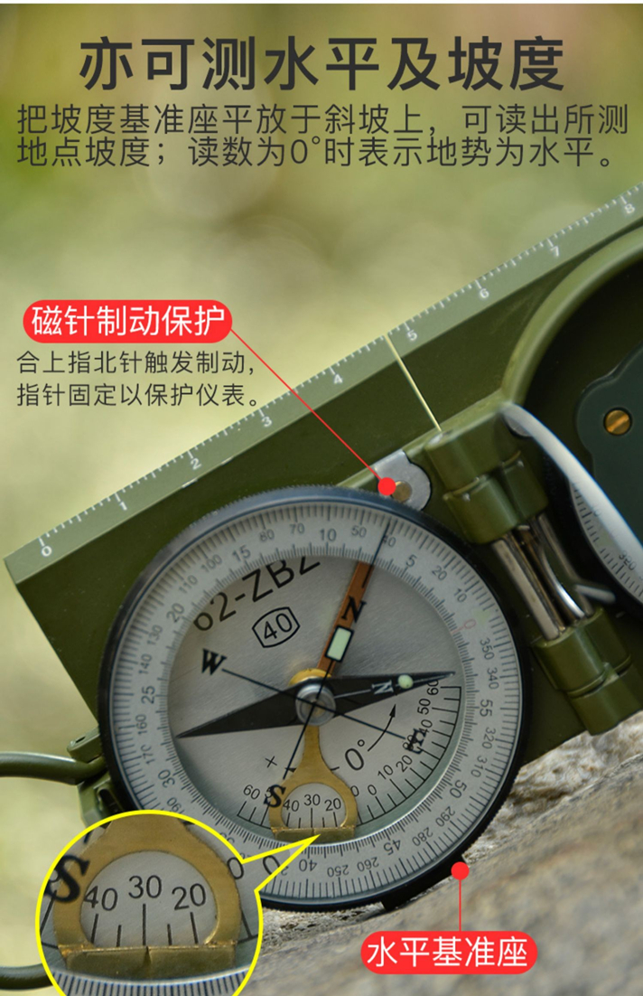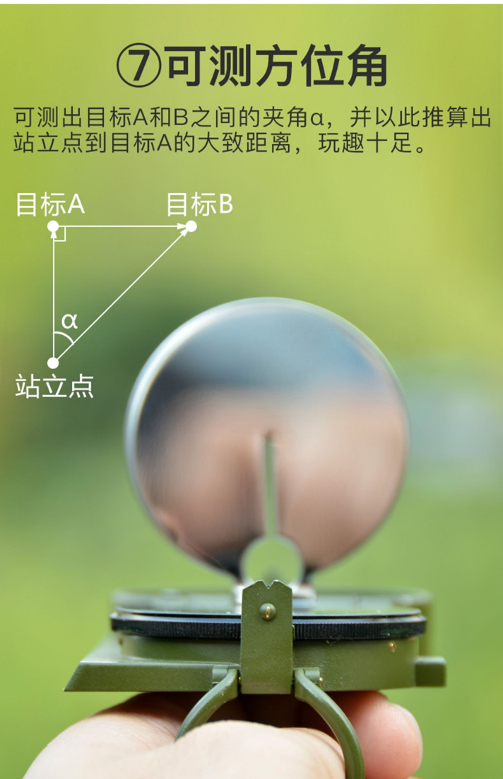多功能,集指北针、户外罗盘、坡度计、测地图两点间距、测方位角、反光镜求救等